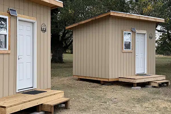 The Chase Headquarters is the historic “Sutcliff” House that use to be the servant quarters for the Maxwell Mansion that burnt to the ground around 1906. The main house has  a kitchen, bathroom, shower and large living/dining space where all meals are served. For those on the guided rifle hunts, lodging consists of 3 new Bunkhouses or the two rooms inside the main house. All rooms have bunks and new mattress with mattress covers (Bring your own pillow & sleeping bag). The Bunkhouses are also insulated, have solar lights and a small ventless wall propane heater.